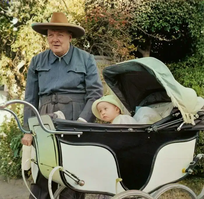 Уинстон Черчилль с малышом-бароном Киллёном в коляске.