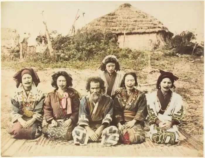 У этого народа есть интересная особенность - их выделяют не только необычные костюмы, но и лица. Для женщин айны практиковали оригинальный обычай - с самого детства девочкам подрезали губы и втирали в раны уголь. И к началу взрослой жизни у девушки была чёрная татуировка, что делало её похожей на Джокера. Во время свадебной церемонии муж завершал татуировку жены последними надрезами.