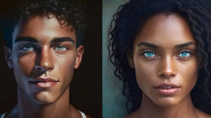 Смуглая кожа и голубые глаза