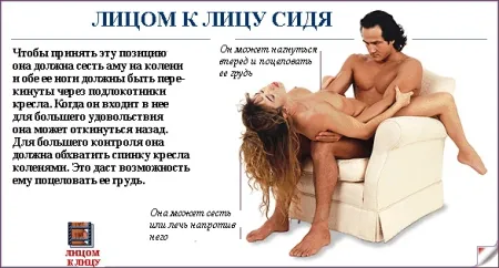 В этой позе мужчина сидит на краю кровати или стула, а женщина садится на его колени, лицом к нему. Мужчина может поддерживать ее за бедра или живот, а женщина может обхватить его шею ногами. Эта поза позволяет обоим партнерам контролировать движения и достигать высокого уровня интимности и стимуляции.