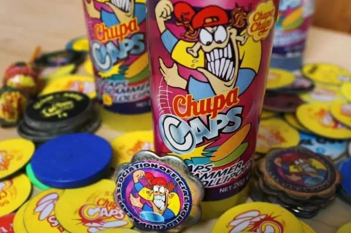 Чупа Кэпс - это наверное одни из самых первых фишек, которые появились в России. Как правило, такие фишки нужно было покупать целым набором, куда входили 10 кэпсов, 1 бита и два чупа-чупса. Но помимо этого чупа-кэпсы можно было купить и в обычном ларьке, так как их частенько давали в довесок к чупа-чупсу.