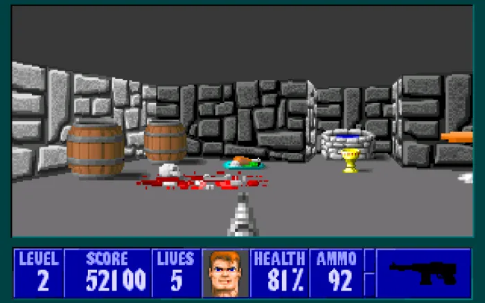 Тайники, расположенные в стенах подземелий, - это одна из главных особенностей "Wolfenstein 3D", наравне с индикатором здоровья, отображаемым в виде разбитого лица. Хотя можно просто идти по уровням, убивая нацистов (если, конечно, реакция и здоровье позволяют), более усидчивые игроки проводят много времени, исследуя стены в поисках секретных комнат. Ах, как же приятно услышать звук открывающейся стены!