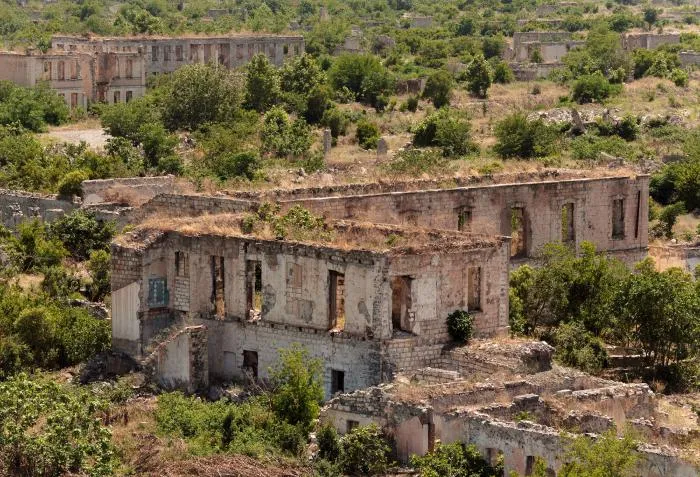 Судьба Агдама похожа на Таваргу. Город стал жертвой Карабахской войны 1992-1994 годов. Азербайджанцы использовали населенный пункт как артиллерийскую базу для обстрела армянских позиций. Последние захватили город штурмом и разнесли его до фундамента.