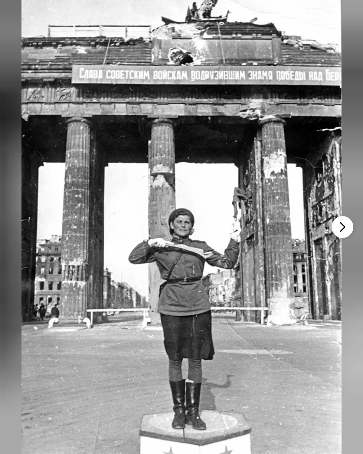 После победы 21-летнюю Мария поставили военным регулировщиком у Бранденбургских ворот в Берлине.