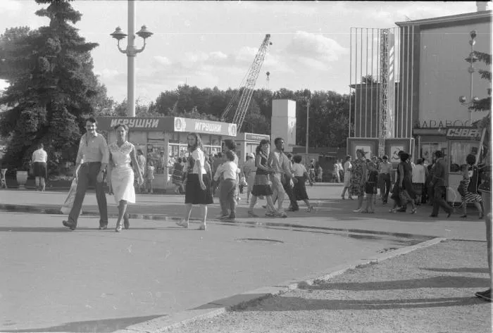Кажется, Лужкова модно ругать за бесконечные вереницы различных ларьков по всей территории столицы. Однако как мы видим начал это совсем не он. Уже при советской власти ларьки встречались в самых неожиданных местах. Игрушки, сувениры, Союзпечать и мороженое.