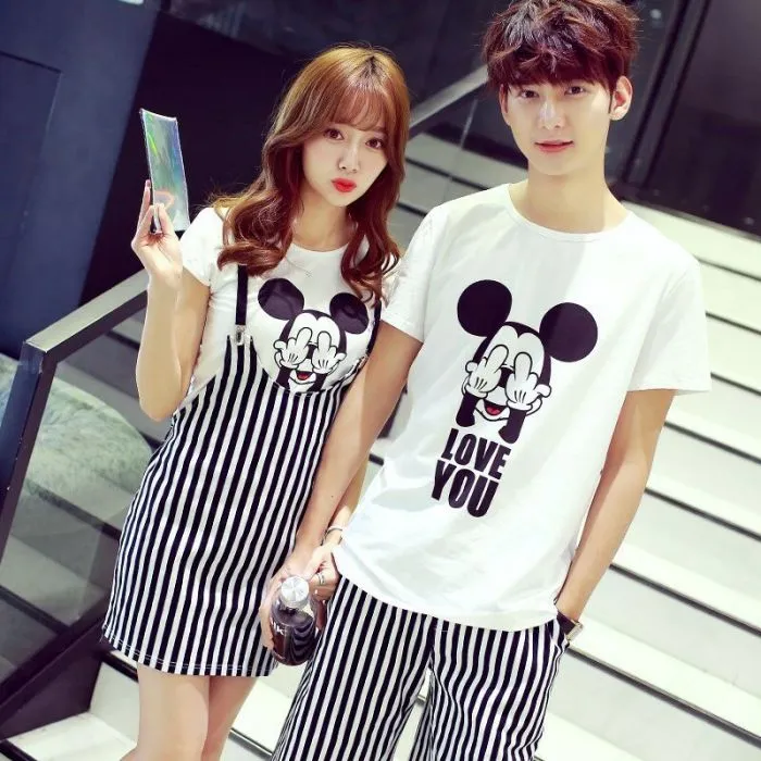 Но что более ярко отражает взаимную симпатию, так это ношение одинаковой или парной одежды: например, футболок со схожим принтом. К слову, парные футболки корейцы обычно носят во время медового месяца, когда по традиции отправляются на остров Чеджу. Да и в целом одинаковые вещи - это сигнал обществу о том, что двух людей связывают романтические чувства.