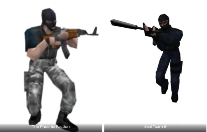 Также хотел упомянуть, что в начальных версиях игры у каждой стороны была только одна фракция. На стороне спецназа игроки использовали модель Seal Team 6, а на стороне террористов — модель The Phoenix Faction.