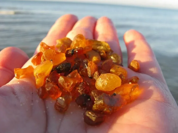 Различали несколько видов янтаря: белый – самый дешёвый, более дорогой красный и самый дорогой – «фалернский», схожий цветом с фалернским вином.