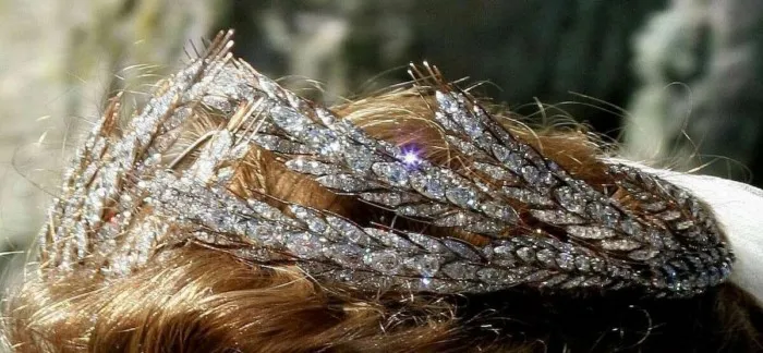 Первая. Диадема была изготовлена русскими ювелирами для приданого Александры Николаевны. По распоряжению жены Павла Первого Марии Фёдоровны, матери Николая Первого и бабушки Адини, всем русским Великим княжнам давались в приданое тиары в виде колосьев – символа плодородия и счастливого супружества.