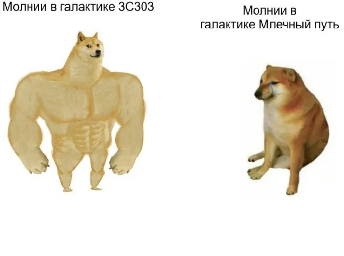 Возможно, вы слышали, что на газовом гиганте Юпитере часто бушуют грозы, блистающие молниями, которые видны с орбиты. Они в несколько раз мощнее, чем земные. Но и наши, и юпитерианские грозы — ничто по сравнению с чудовищным штормом, бушующем в сердце галактики 3C303.