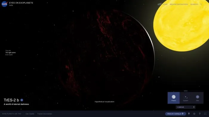 TrEs-2b — очень необычная планета. Это газовый гигант, но не такой, как наш Юпитер: он немного больше размером и при этом чёрный. Абсолютно чёрный. Геометрическое альбедо планеты составляет менее 1%, то есть она отражает меньше процента света своей звезды. TrEs-2b чернее, чем самая чёрная акриловая краска, которую вы сможете найти, чернее угля или сажи.