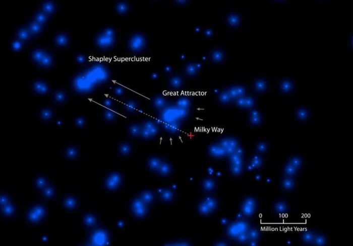 Но что самое интересное, Великий Аттрактор тоже не неподвижен. Он в свою очередь двигается к сверхскоплению Шепли — огромной группе из 8 000 галактик массой более 10 миллионов миллиардов Солнц.