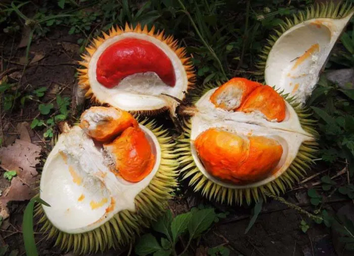 Считается, что у красных дурианов самый сильный запах и вкус, поэтому они так ценятся. Как буду в Бангкоке в следующий раз – найду место, чтобы попробовать, если жаба не задушит. Сейчас, кстати, я ради академического интереса пытаюсь вырастить пару дуриановых деревьев, ростки уже есть, посмотрим, что будет дальше))