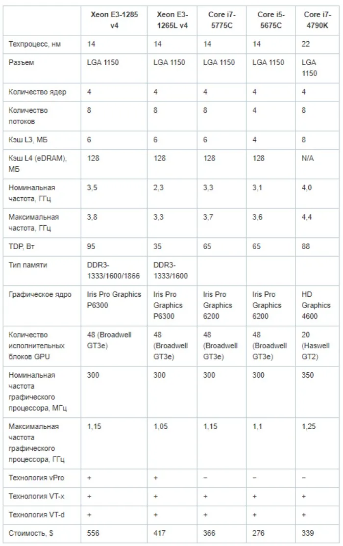 Не секрет, что Intel в те годы безраздельно властвовала в серверном Enterprise-сегменте, впрочем, этот рынок сохраняется за компанией и сейчас, хоть и не в таких объемах. Итак, релиз состоял из 15 процессоров нового поколения, где всего 5 изделий имеют разъем LGA 1150 для самостоятельной сборки. Три из которых — серверные Xeon.