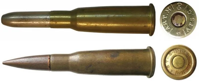 Следующей проблемой стал переход на остроконечную пулю. При сотрясении пуля могла наколоть капсюль впереди расположенного патрона и у оружия начинал стрелять не ствол, а магазин. Поэтому пришлось добавлять в конструкцию гильзы проточку для фиксации острого конца.