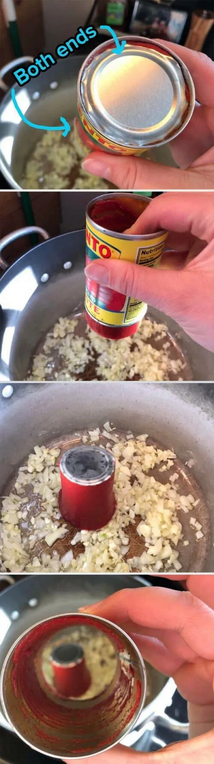 3. Откройте банку томатной пасты с обеих сторон, надавите на крышку. Вуаля!