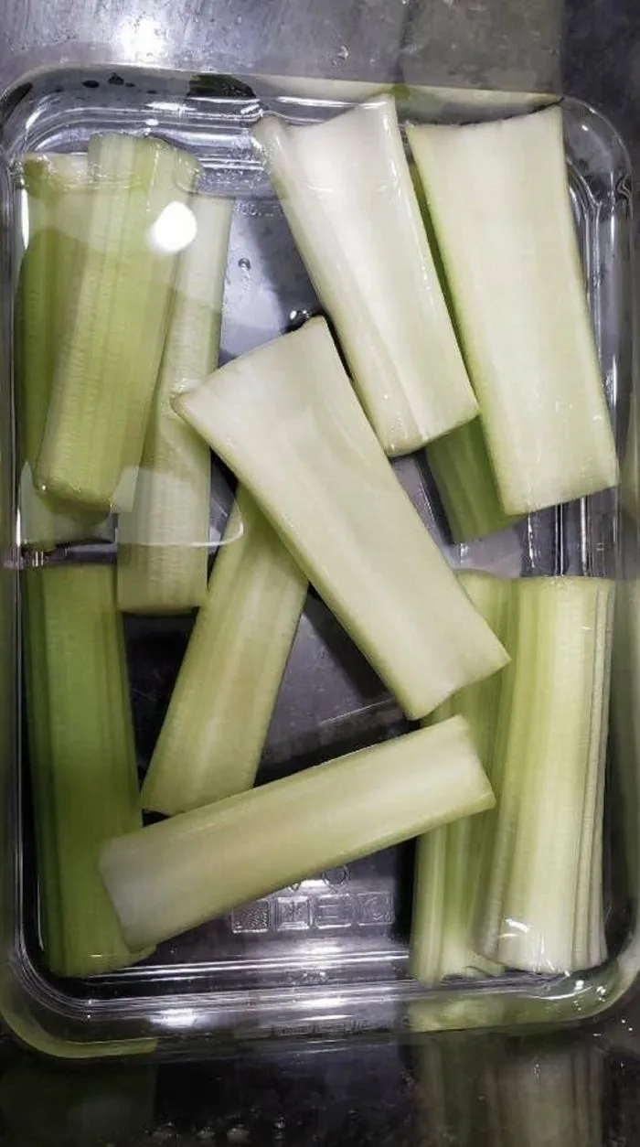 14. Нарежьте сельдерей и положите его в воду. Так он дольше хранится и остается хрустящим