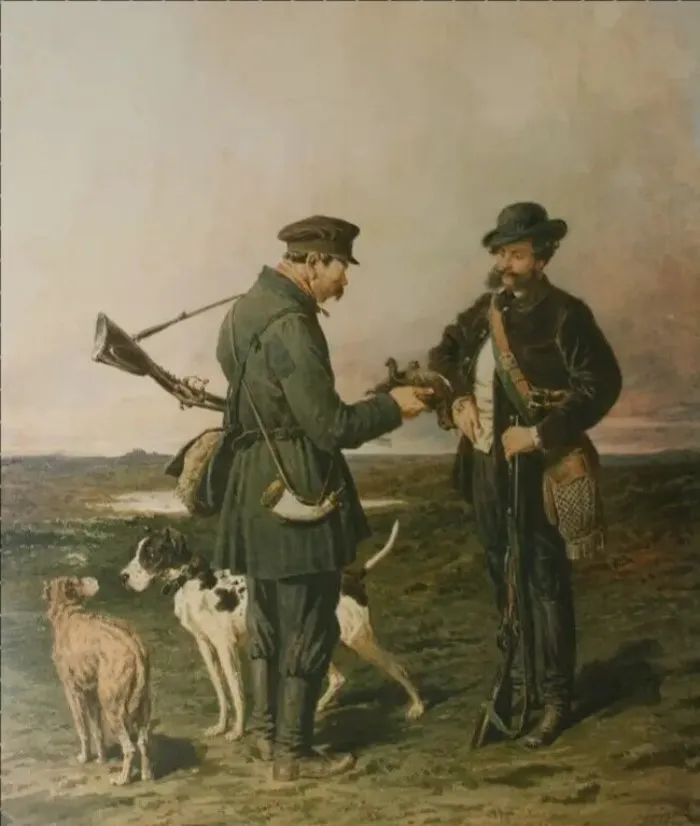Для многих охота была настоящей страстью и при этом весьма недешевым удовольствием, на котором можно было разориться. Герой картины живет бедно, но денег на охотничьих собак находит. При этом у него, можно сказать, полный комплект: и гончая, которую он тренирует, и борзая.