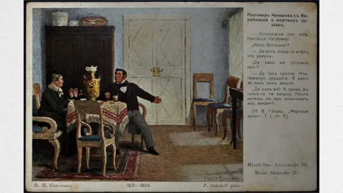 Иллюстрация к роману «Мёртвые души» Чичиков в доме Коробочки