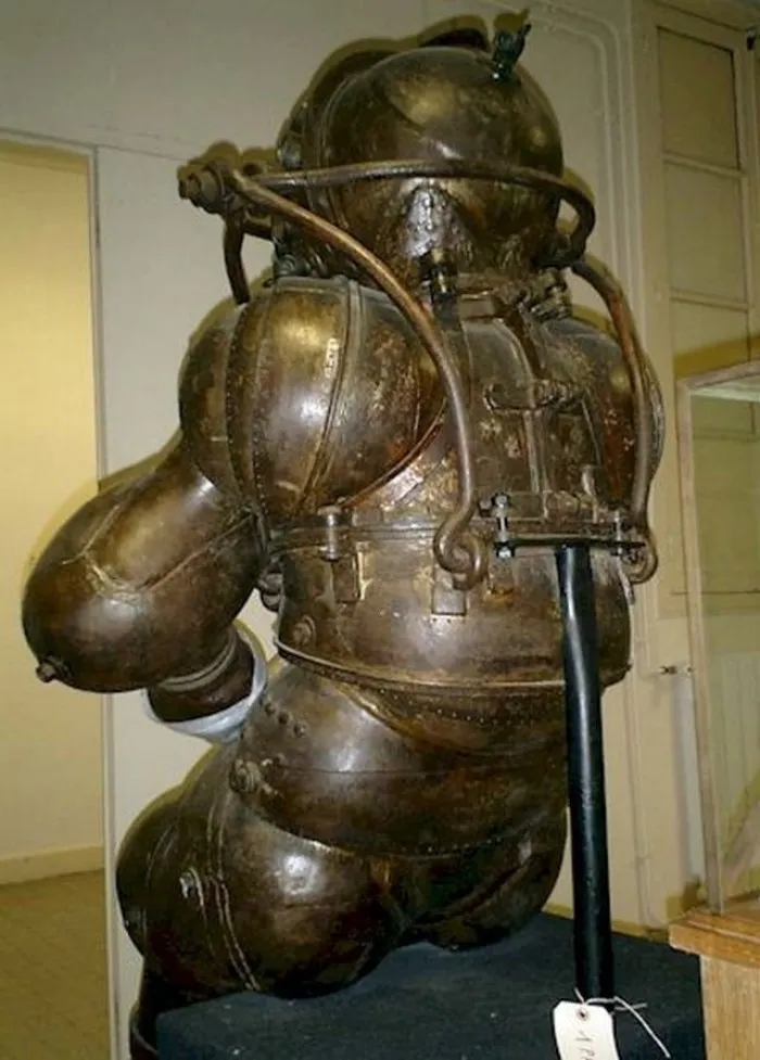 Так, в 1715 году британец Джон Летбридж предложил нечто среднее между скафандром и батискафом, а по сути - просто дубовую бочку с отверстиями для рук и смотровым оконцем.