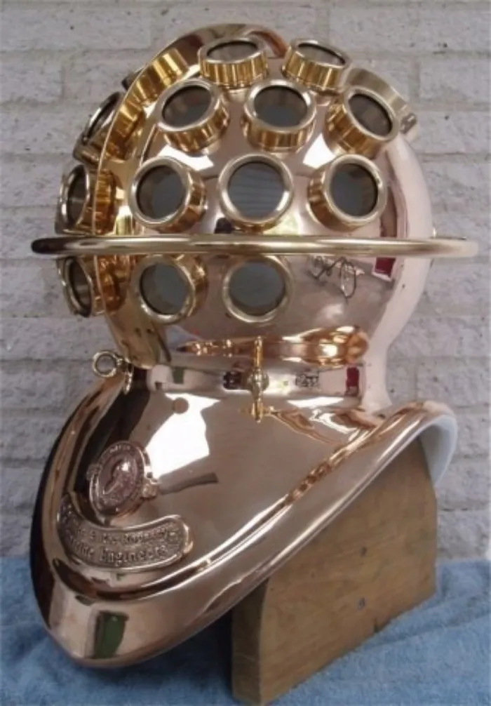 Шлем представлял собой сваренную из 4 частей сферу с 20 мини-иллюминаторами, забранными стеклом толщиной 14 мм. Таким образом удалось добиться приличного обзора без риска разрушения стекла давлением воды. В затылке шлема имелся отдельный лючок, который можно было снять, давая водолазу возможность дышать свежим воздухом во время длительного процесса сборки/разборки скафандра. Своеобразные поручни, идущие от шлема к поясу предназначались для крепления тросов, которые опускали и поднимали скафандр при погружениях.