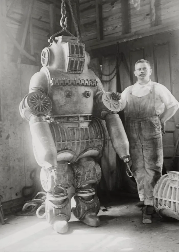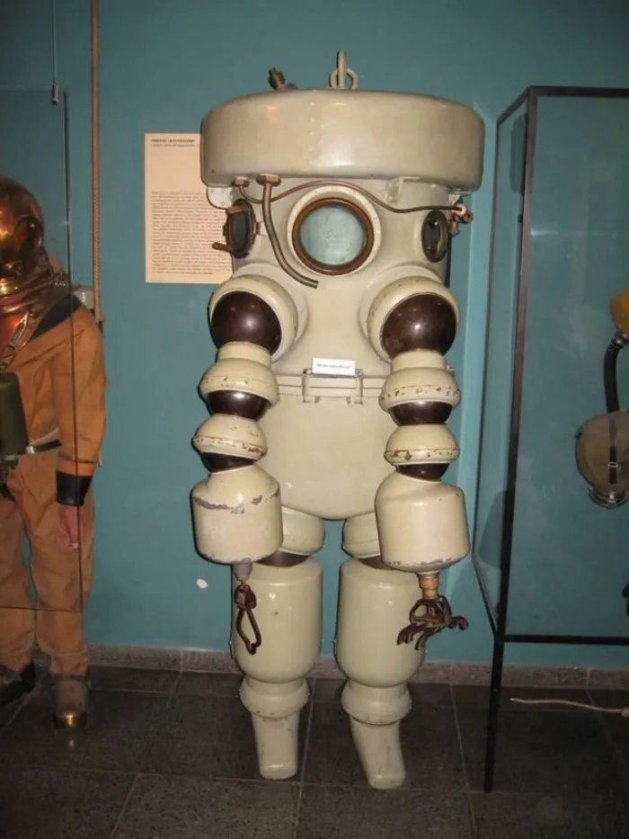 Прогресс не стоял на месте и постепенно, с помощью различных технических приспособлений, человечество всё дальше погружалось в глубины моря. И в какой-то момент уперлось в новую неодолимую преграду. Чем глубже погружался водолаз, тем сильнее на него действовало давление воды. На глубине свыше 300 метров оно очень быстро становилось несовместимым с жизнью. Водолазный костюм для глубоководных погружений требовался, с одной стороны, достаточно жесткий для защиты от давления воды, с другой стороны - достаточно гибкий для сохранения подвижности. Ну и разумеется - герметичным. Сочетать в одной конструкции три этих сложносовместимых качества долгое время считалось невыполнимым. Хотя многие пытались, находя порой довольно необычные решения.