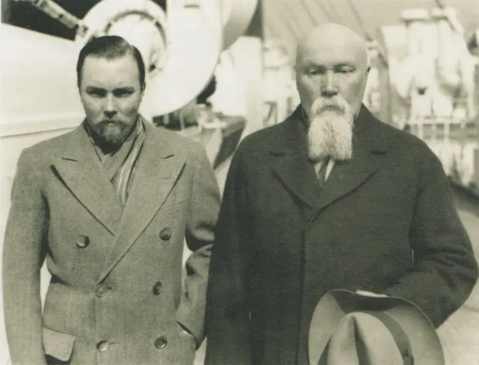 Николай Рерих с сыном Юрием в день приезда их в Америку. Нью-Йорк. 14 марта 1934 г.