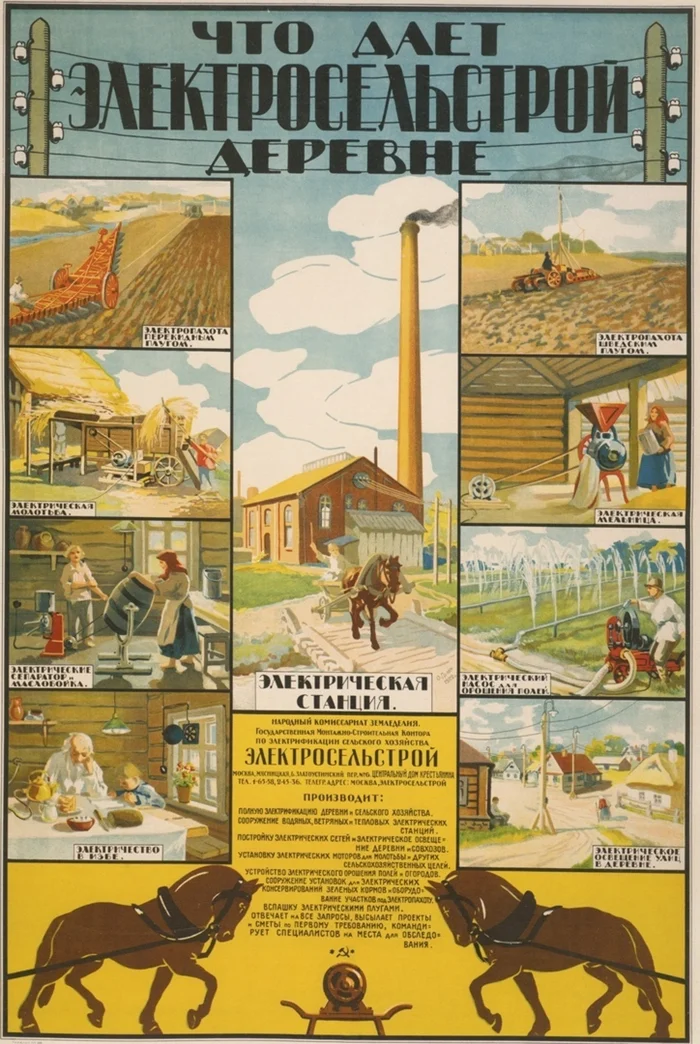 Плакат 1922 года с рекламой электрификации деревни
