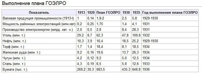 Результаты ГОЭЛРО и первых двух пятилеток