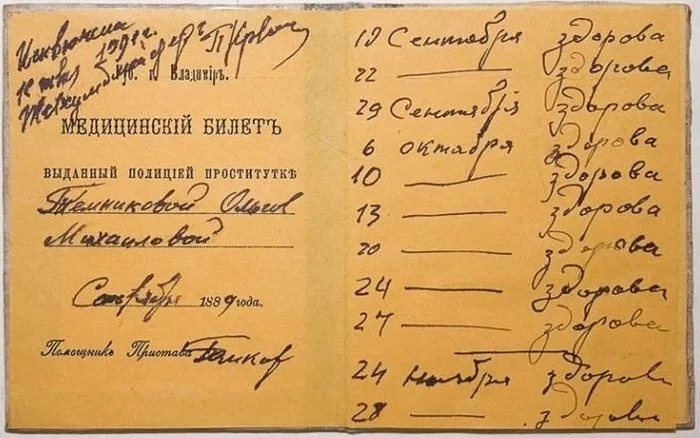 В связи с этим в 1843 году был учрежден «Врачебно-полицейский комитет», который стал официально заниматься регулированием проституции. Для проституток были введены дополнительные правила: они должны были получать «Заменительный билет» вместо паспорта, и они должны были проходить регулярное медицинское освидетельствование и посещать баню