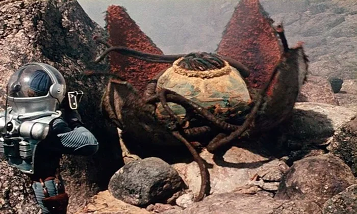 Кадр из фильма "Планета бурь". Обратите внимание на "яйцо", из которого выпрыгивает венерианец. По советскому фильму "Планета бурь" в Голливуде учились снимать космические блокбастеры. И так называемый "овоморф" – яйцо Чужого – был придуман у нас!