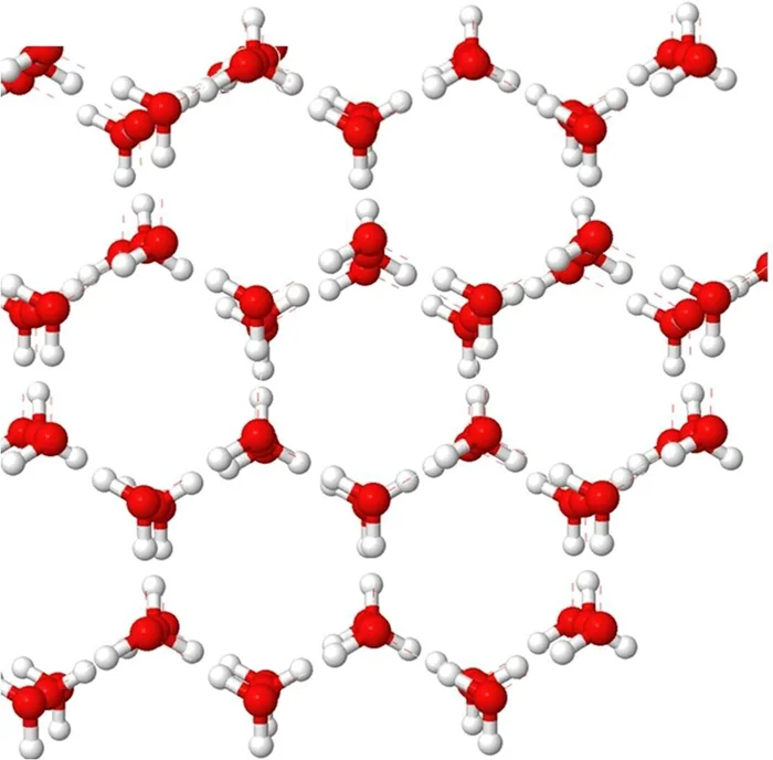 В капле воды молекулы движутся свободно, но при замерзании они начинают цепляться друг за друга, образуя шестиугольную (гексагональную) кристаллическую решётку: водородные связи «притягивают» атомы соседних молекул друг к другу, и так образуется правильная шестиугольная «решётка». Рождается маленький плоский шестиугольный кристаллик – «зародыш» будущей снежинки.