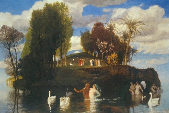 Всякий, кто знаком с античной мифологией, помнит сюжет о том, как души умерших героев и любимцев богов попадают в Элизиум, где самые смелые и достойные находят последнее пристанище на островах. Таким образом Бёклин показывает странствие души к покою и вечности и сопутствующую этому возвышенную скорбь и тайну.