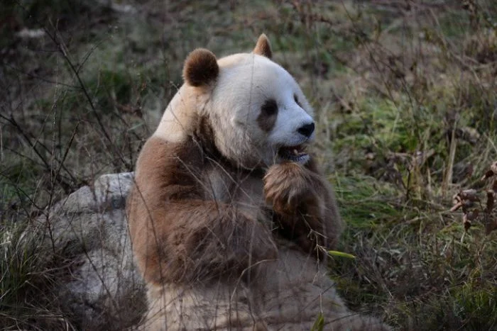 Это подвид большой панды. На сегодняшний день в неволе содержится лишь один представитель — самец по кличе Цицзаи. Учёные ищут ответ на эту биологическую загадку. Основная теория говорит о том, что коричневый цвет — закреплённая генетическая мутация. Этих мирных зверьков осталось всего лишь 300 голов.