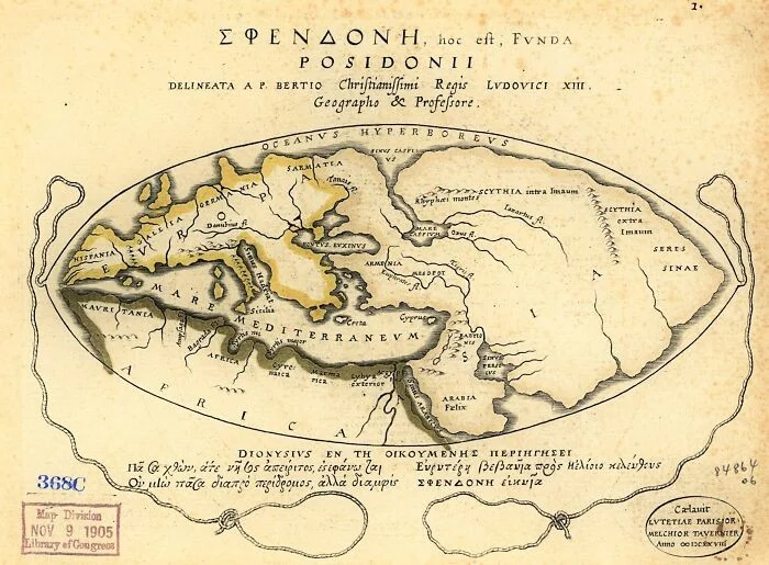 Эту карту мира нарисовал во втором веке до нашей эры Посидоний. Она расширяет представления древних греков о мире и включает в себя открытия Александра Македонского.