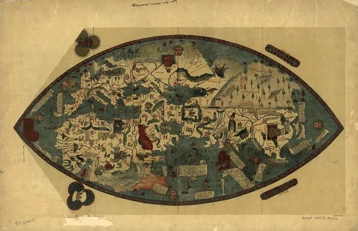 Эта карта была нарисована между 1457 и 1459 годами венецианским монахом Фра Мауро. Андреа Бьянко, моряк и картограф, помогал в создании этой карты, демонстрирующей его глубокие знания о земном шаре.