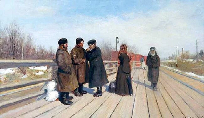 «В ожидании поезда. Вербное воскресенье», начало ХХ века. Частное собрание