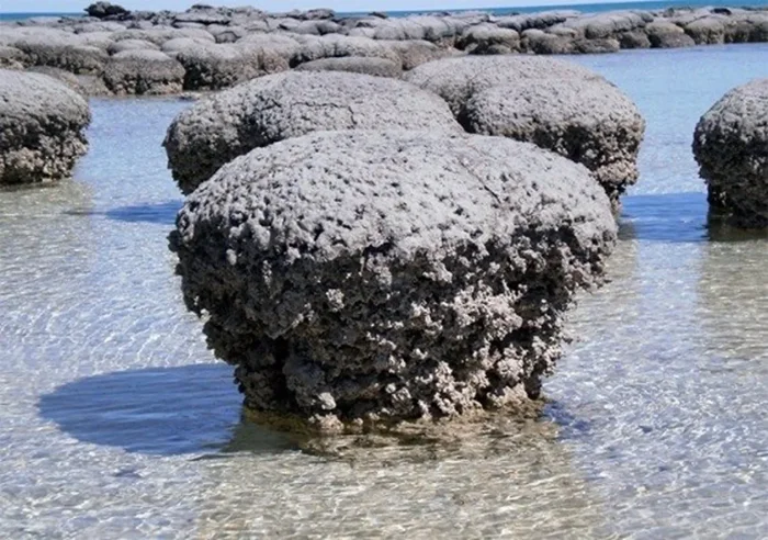Первые признаки древнейшей жизни на Земле зафиксированы в так называемых строматолитах. Это подобные каменные образования.