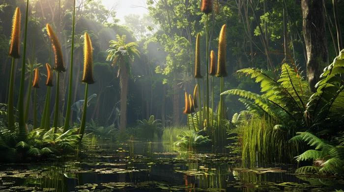 В период до динозавров, 300 млн лет назад, уровень кислорода в атмосфере был выше, чем сейчас. А цветковых растений и, соответственно, опылителей тогда не было.