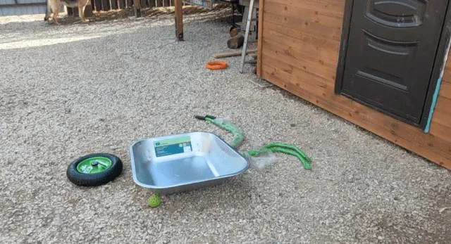 Случилось это перед высадкой газона. Тогда надо было развозить много грунта по участку, и работа растянулось на долго. Выбирал естественно один из самых бюджетных вариантов основываясь на том, что после тачка вряд ли мне где-то пригодится.