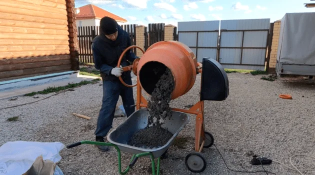 Финальным штрихом стала работа по бетонированию столбов для нашего легкого заборчика из сетки. Тачка использовалась для перемещения бетона от мешалки до лунок и сразу скажу нагружалась по максимум, да так что перевозить было страшновато, потому как все «плавало».