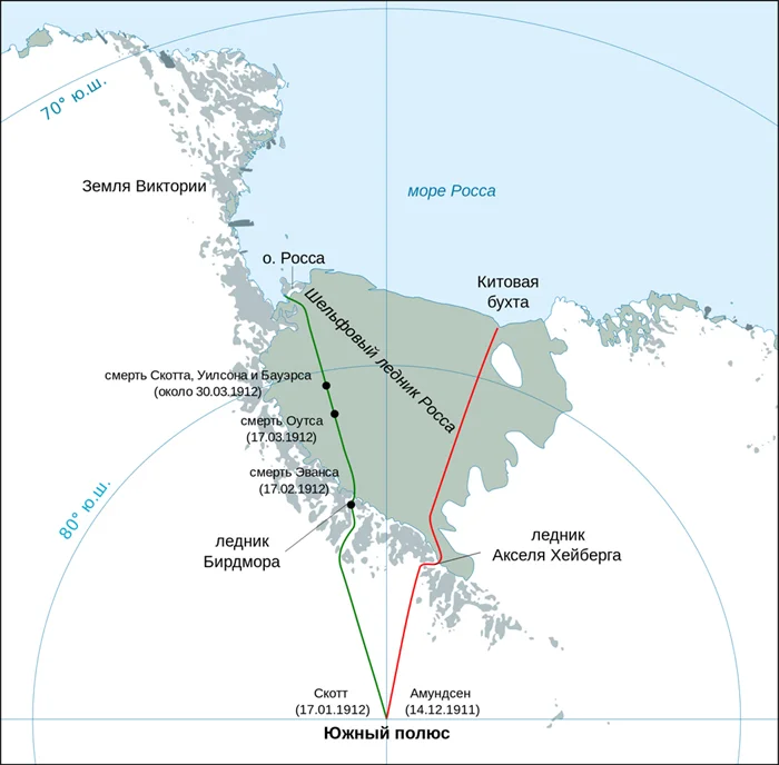 Маршруты экспедиций Амундсена и Скотта