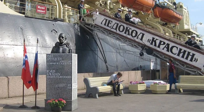 А возле «Красина» можно увидеть бюст Руалу Амундсену. Великому путешественнику с непростой судьбой.