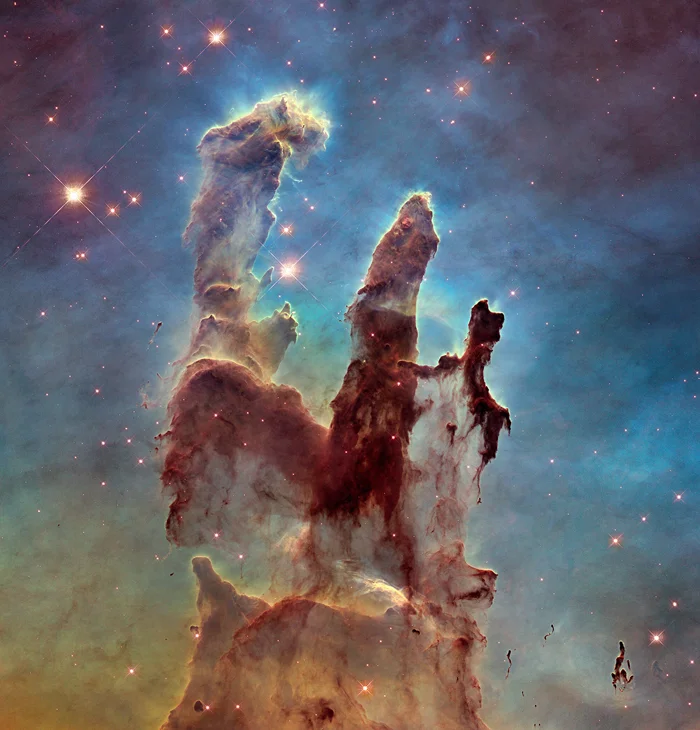 Столпы творения - это не просто красивая и меткая метафора. Здесь постепенно скапливается вещество, которое, достигнув определенной плотности, приведет к образованию новых звезд.
