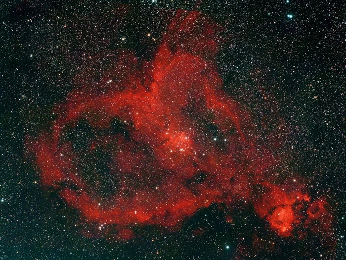 В отличие от Глаза Бога эта туманность насыщена "живыми" звездами. То есть теми, что интенсивно испускают излучение. Правда красное, что делает объект еще более похожим на сердце.