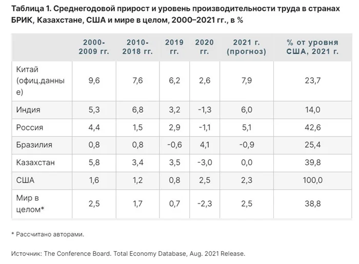 Посмотрите внимательно на эту любопытную таблицу. Получается, что производительность труда в России почти в два раза выше, чем в Китае.