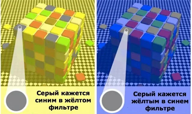 Однако даже самый совершенный механизм может давать сбои. Вспомните, как меняется восприятие цвета в сумерках или при ярком солнечном свете. Или посмотрите на эту картинку: