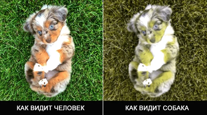 Интересно, что животные видят мир совсем в других цветах, чем мы. Например, собаки имеют двухроматическое зрение, то есть различают меньше оттенков, чем люди. Для них мир менее яркий и насыщенный, особенно в красно-зеленом спектре. Зато собаки намного лучше нас различают движущиеся объекты и видят в сумерках.