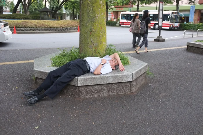 Учитывая внушительный рабочий день и аномальную смесь стресса и усталости, японцы могут полностью отдаваться сну в обычных ситуациях – во время обеденного перерыва, в общественном транспорте, на тротуаре и даже на рабочем месте.