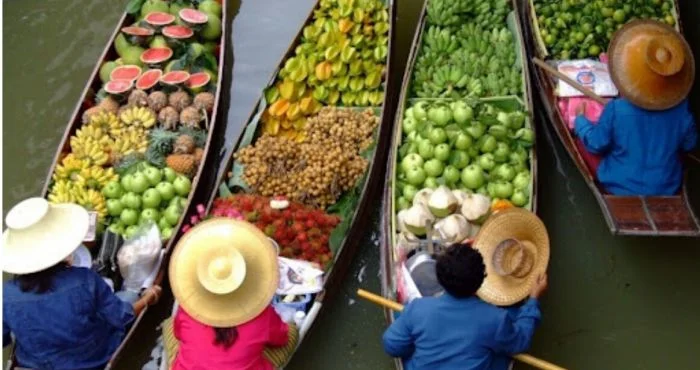 В Таиланде существует интересная практика использования "кондиционеров" на рынках — огромные льдины, которые размещаются перед вентиляторами для охлаждения воздуха.